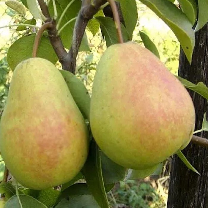 Плоды: средней величины, правильной грушевидной формы, зеленоватого цвета часто с лёгким румянцем, мякоть белая или кремовая, сочная, тающая, на вкус сладкая с освежающей кислинкой.